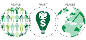 The image below shows three circles in green: the first is labeled people, the second profit, the third planet. The three images overlap each other.