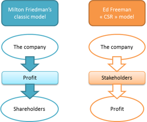 Below is a visual of Milton Freidman’s classic model compared to Ed Freeman’s “CSR” model.